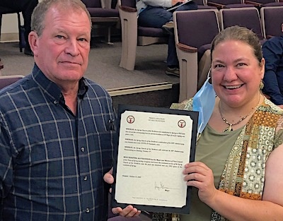 LURAY, Oct. 13 — Mayor Jerry Dofflemyer presented a proclamation Tuesday night recognizing the 101st anniversary of the Luray Church of the Brethren, who will mark the milestone at Homecoming this Sunday, Oct. 17.