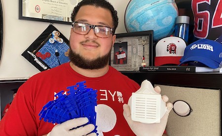 To help her son buy more materials to keep printing the masks and straps, Diaz set up the following fundraising Facebook page: https://www.facebook.com/donate/663828021084811/