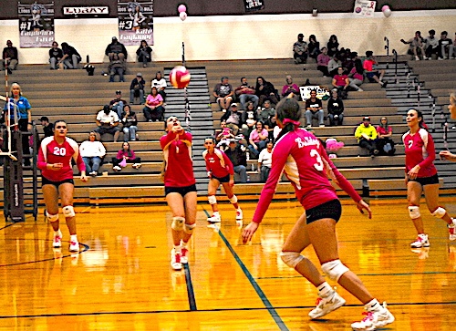 LURAY, Oct. 10 — The Luray Bulldogs held a moving ceremony to honor Breast Cancer Awareness Month prior to Thursday night’s Bull Run District match with Madison. The players donned pink uniforms for the occasion and handed out pink roses to cancer survivors and those battling the disease. However, on the court, the Bulldogs couldn’t slow down the third-place Mountaineers, as Madison swept Luray on the road in three sets.