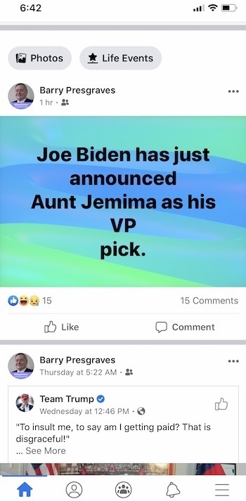 Presgraves’ Facebook post about Biden’s potential running mate prompted quick and negative reactions by those who saw it before it was taken down by Presgraves on Sunday evening.