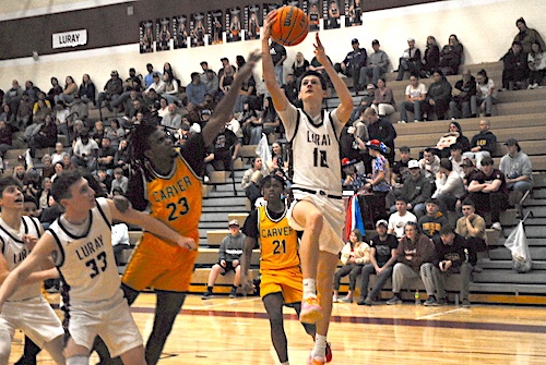 Luray hit three of its eight three-pointers on the night in the third quarter, while Carver went 3-for-15 from the floor. The Bulldogs took a 58-21 lead into the fourth quarter and substituted freely. The home team got great bench play from junior Cade Horn, who had 11 points in the region semifinal including a three-pointer. Luray cruised to a 32-point victory, 65-33.