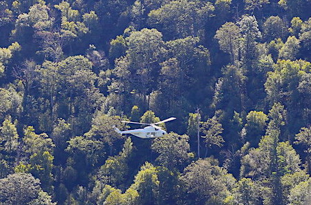 September 21, 1961 — The dense nature of undergrowth and trees in the Kite Hollow area drained by the East Hawksbill is indicated by the length of time it took searching parties to locate the wreckage of a Civil Air Patrol plane lost in the area on Sept. 9.