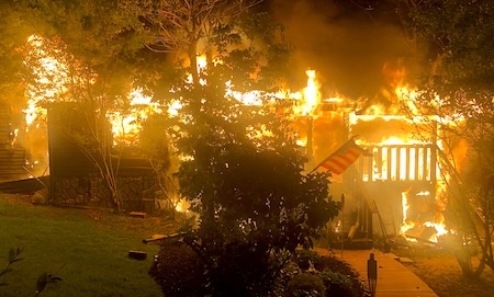 Fire was showing from the entire home when firefighters arrived. The home is considered a total loss.