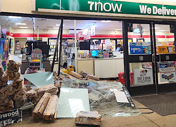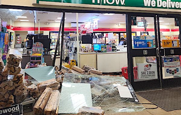 Upon arrival, officers learned that a physical altercation had occurred between the vehicle’s owner and a female suspect in the parking lot. During the altercation, the suspect gained control of the vehicle and stole it from the owner. The suspect then left the parking lot, returned a short time later, and drove the vehicle through the front of the store before fleeing the scene.