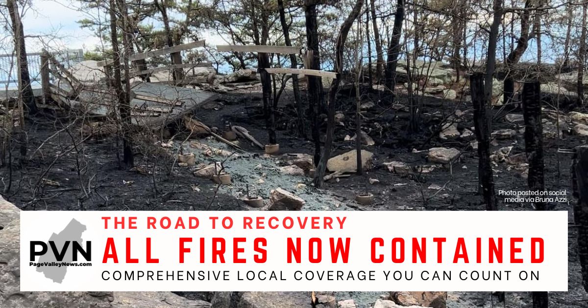 On Wednesday morning, the Virginia Department of Forestry stated that the 211 West, Shenandoah Forest and Serenity Ridge fires they were managing in Page County had “excellent progress made [Tuesday], reaching containment…” Although Thursday morning’s report did not read “100% contained.” The only fire considered not contained is the Capon fire in Rockingham County, which now has burned 2,486 acres.